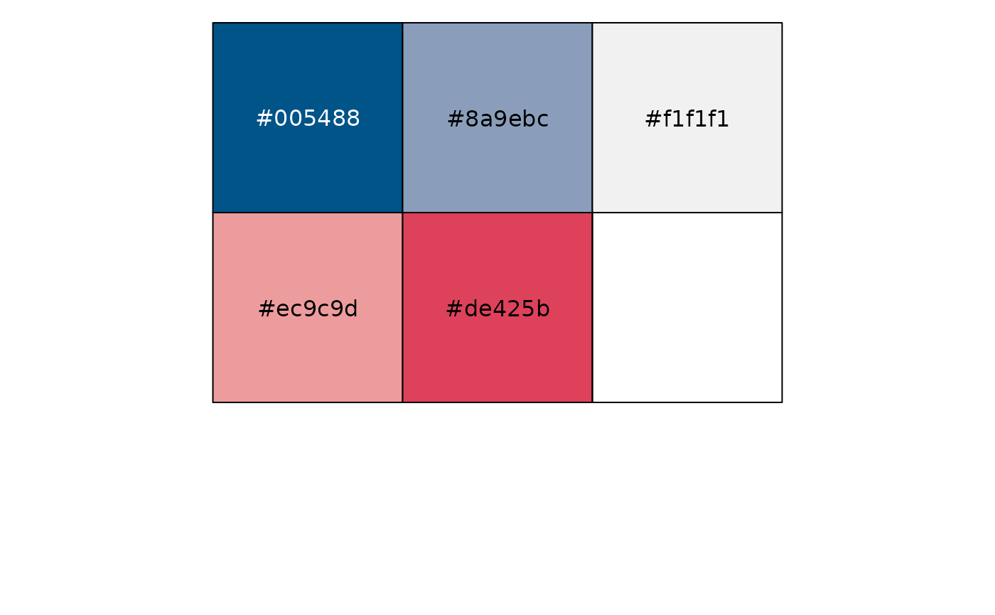 #> "#005488"This outputs a named vector. Wrap it with unname() to
